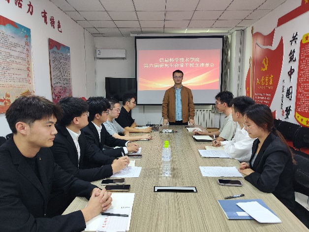 第六届研究生会骨干民主推荐会在学院党员活动室举行,本次会议旨在总结研究生会过去一年工作,并选举出新一届研究生会骨干成员。参加会议的有研究生会指导老师屈会奇、第五届研究生会主席团成员以及竞选新一届研究生会骨干的候选人,会议由屈会奇主持。