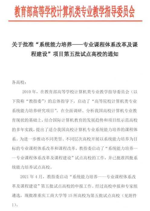 8、教育部计算机教指委课程建设项目--系统能力培养-专业课程体系改革及课程建设