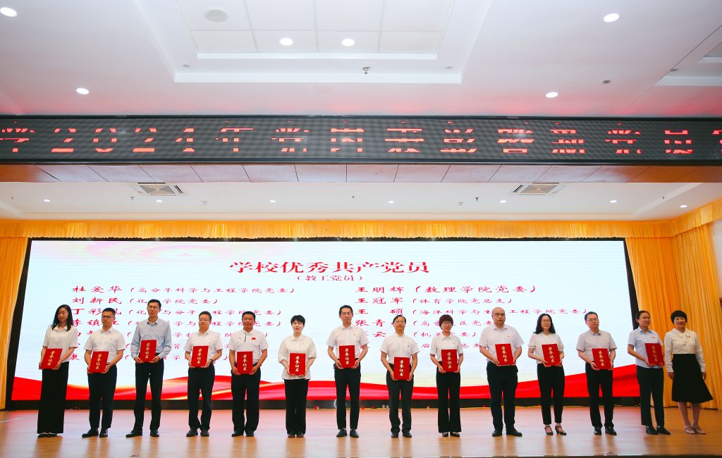 在中国共产党成立103周年之际,为充分发挥先进典型表率示范作用,6月28日,学校在崂山校区第二报告厅举行2024年党内表彰暨新党员宣誓活动,肉漫